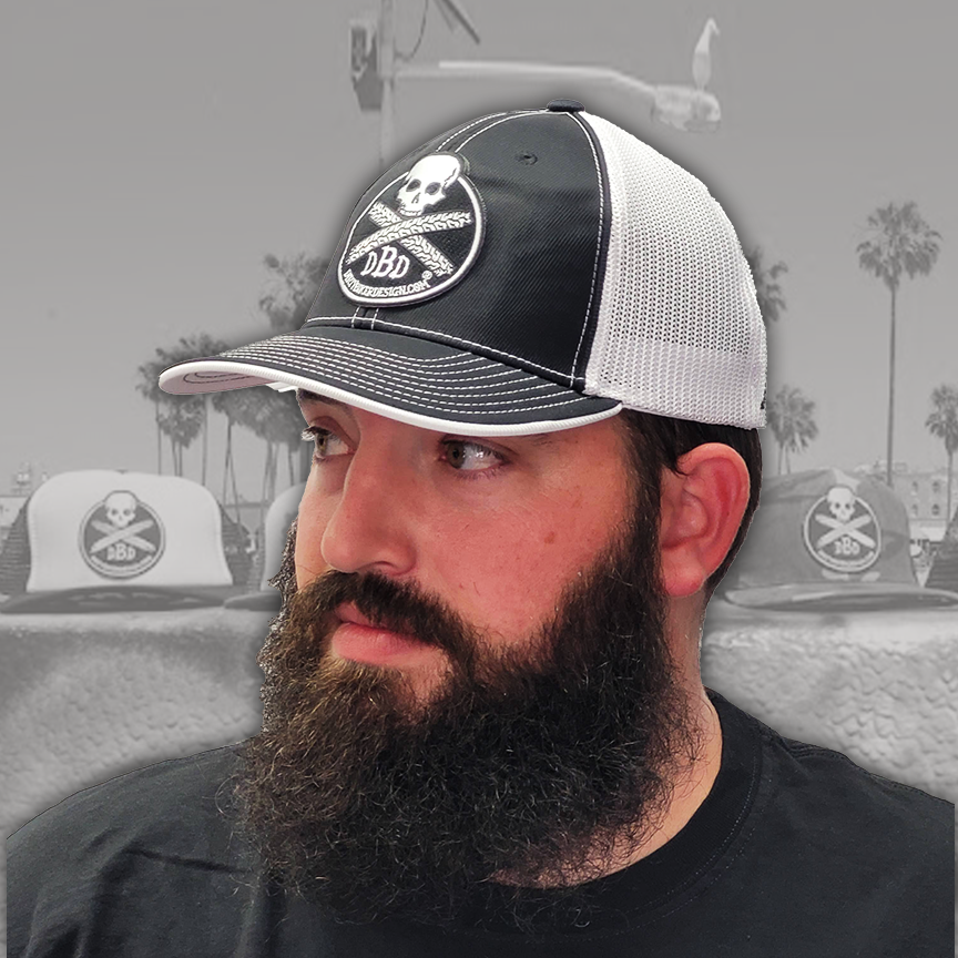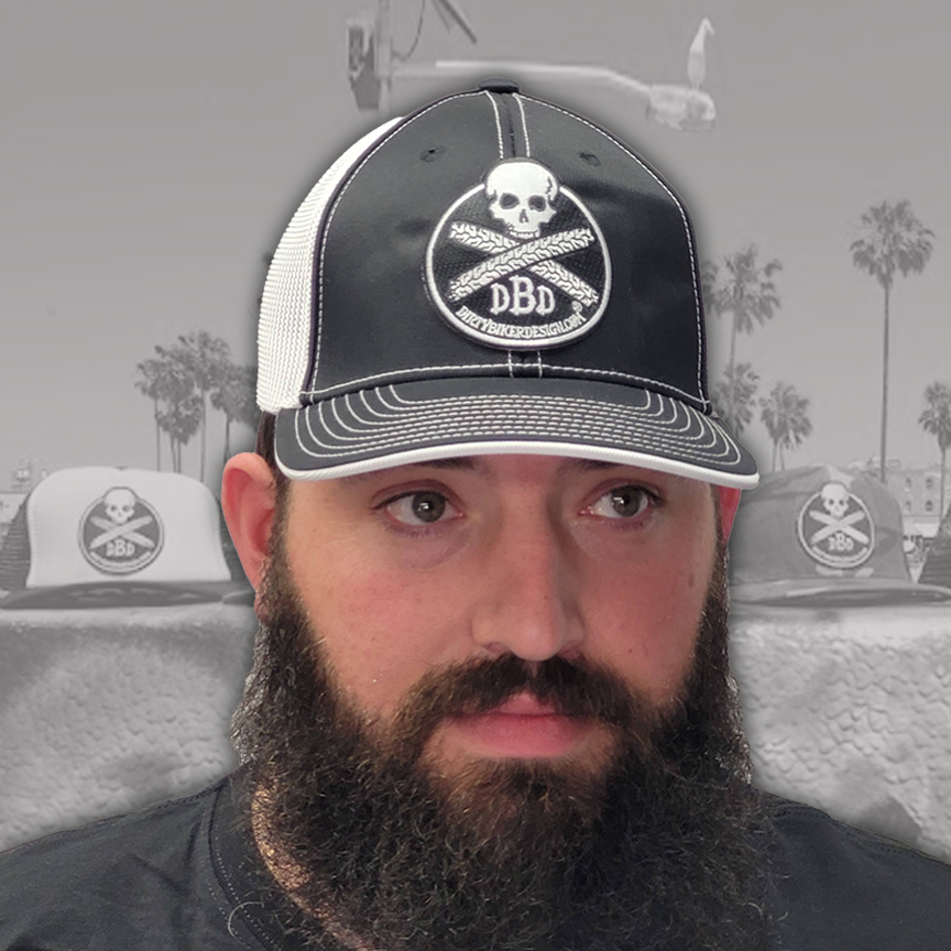 Front and center sits the embroidered DBD logo patch, a loud reminder of who you ride with. Whether you’re posting up at bike night or clocking miles, this hat brings the attitude without trying too hard.